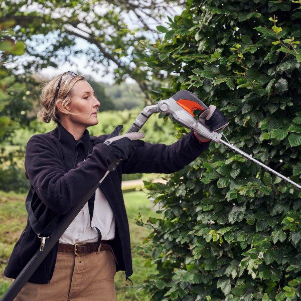 Cortasetos de uso profesional, a batería, con un alcance de hasta 4 metros y medio. Equipado con un tubo telescópico de longitud ajustable y con equipo de corte de ángulo ajustable. 520iHT4 combina alto rendimiento con bajo peso, cero emisiones contaminantes, niveles de vibración menores y funcionamiento silencioso. * No incluye batería ni cargador.